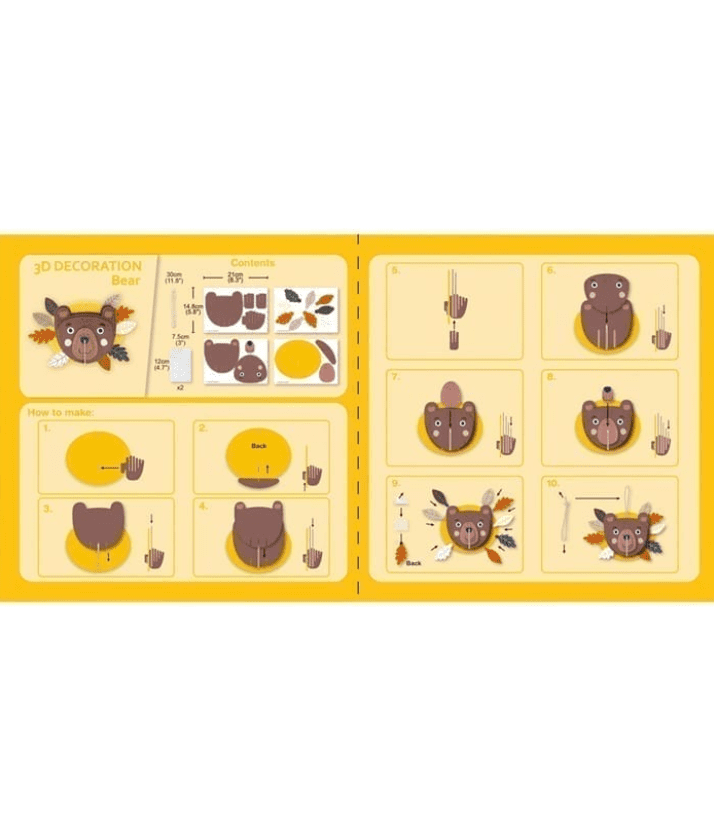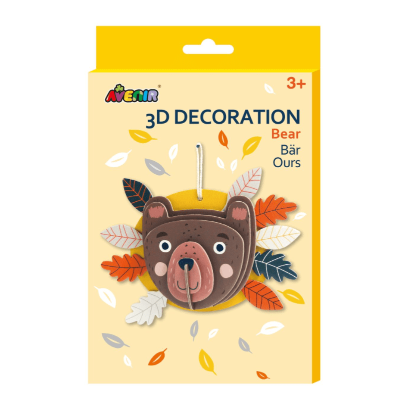 הרכיבו דב בתלת מימד. באמצעות הערכה תוכלו להכין קישוט בצורת החיה שאתם אוהבים, בתלת מימד, בעצמכם! לאחר מכן תוכלו לתלות אותה בכל מקום שתרצו. הערכה מכילה את את כל הפריטים הדרושים להרכבת הדב וחוט לתלייה.