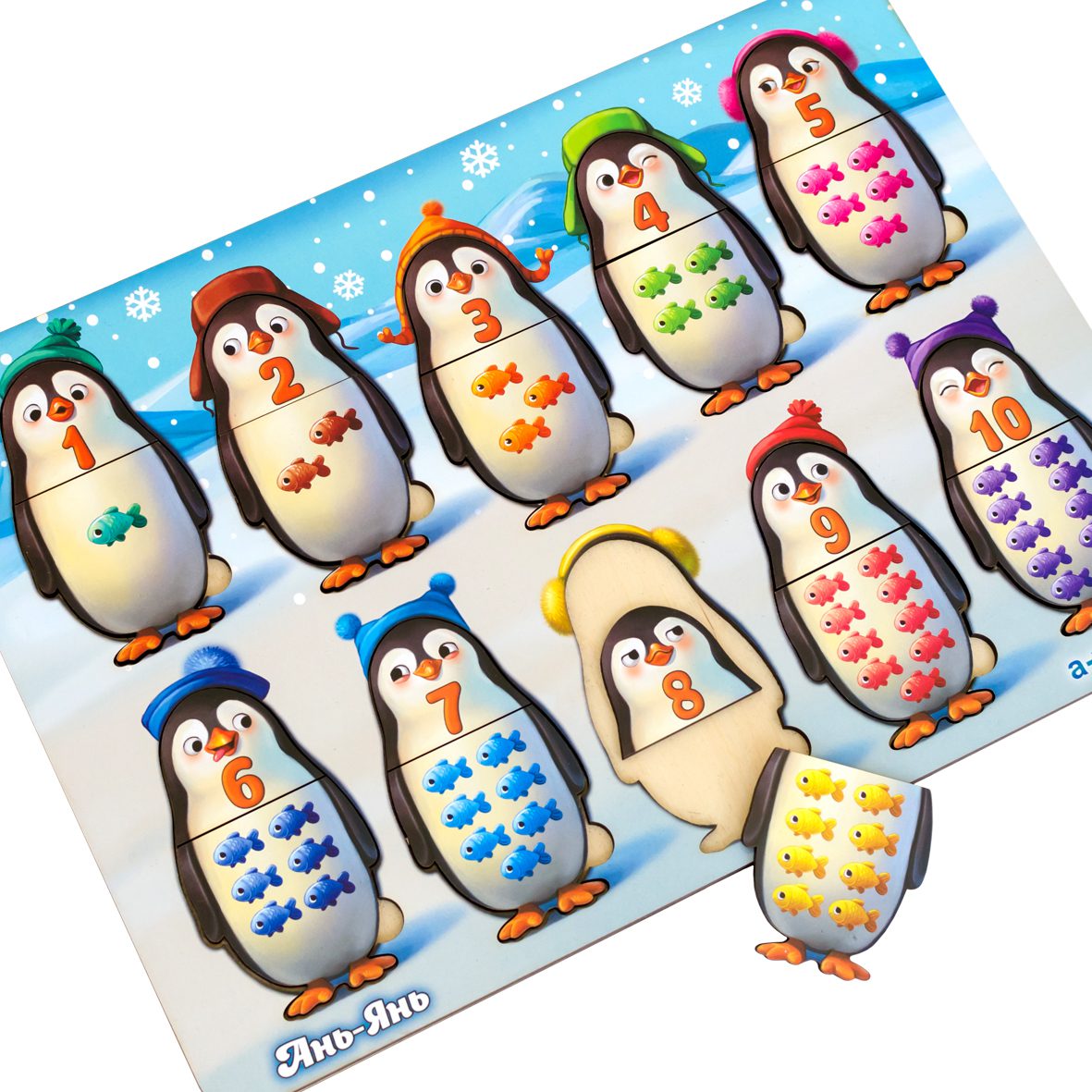 משחק הרכבה פינגווינים מבית Krutoy. המשחק מלמד מספרים – התאמת כמות למספר. להסבר על המוצר לחצו על "מפרט המוצר" למטה.
