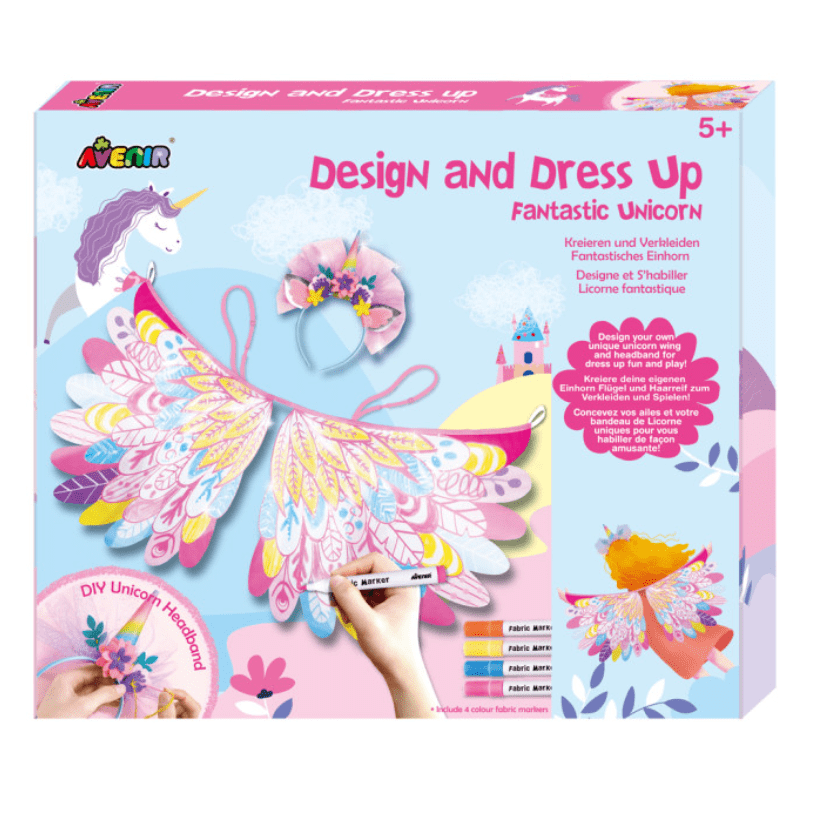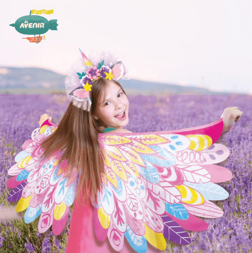 ערכת עיצוב תחפושת – חד קרן. הילדים מעצבים בעצם תחפושת חד קרן! מכינים קשת לשיער וצובעים את הכנפיים עם הצביעים הרחיצים המצורפים. ניתן לכבס את הכנפיים ואז לצבוע אותן שוב. לפרטים נוספים לחצו על "מפרט המוצר" למטה.