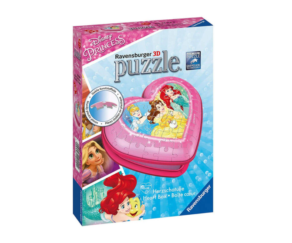 פאזל תלת מימד בנושא נסיכות מבית Ravensburger הגרמנית. פאזלים רגילים לכולם יצא להרכיב… אבל פאזל תלת מימד הוא פאזל מיוחד ומאתגר. לאחר הרכבת הפאזל הוא משמש בתור קופסת תכשיטים. בפאזל 54 חלקים.