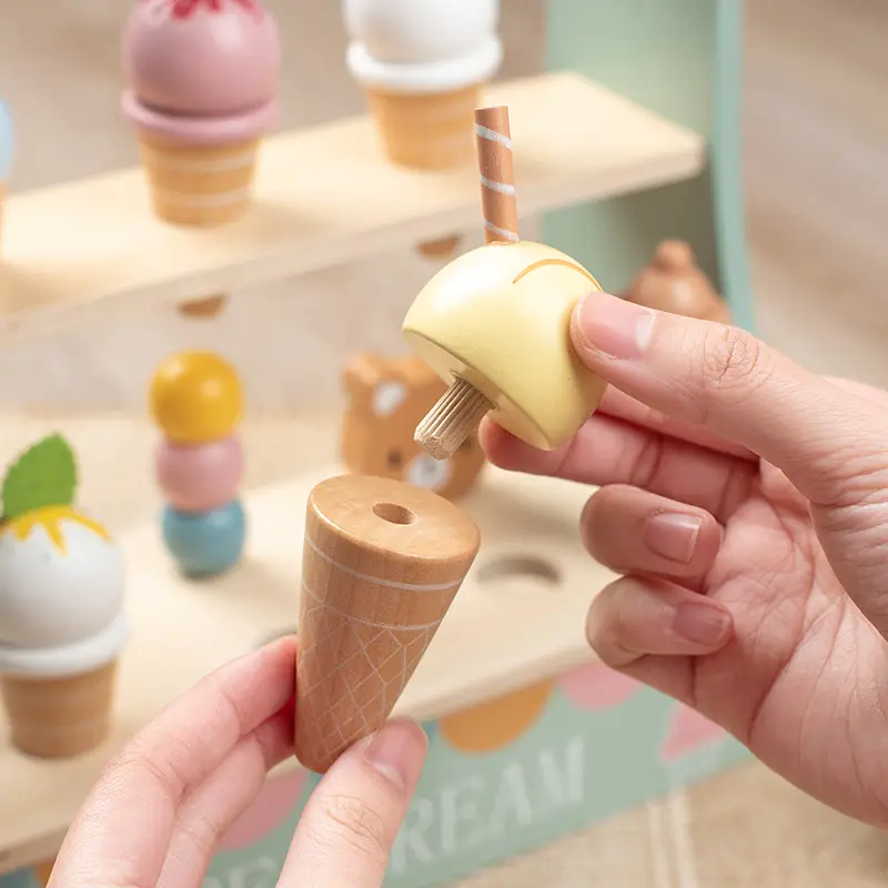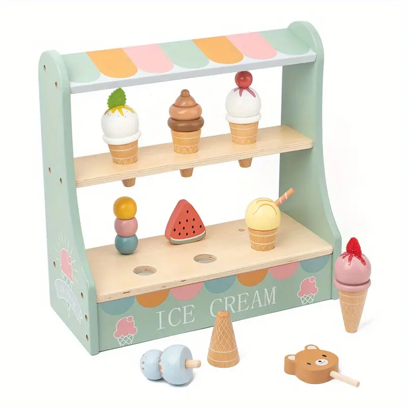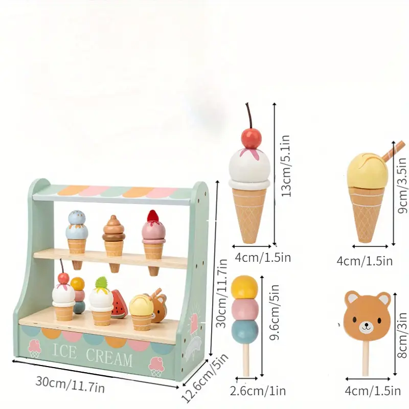 סט הצבעוני ומקסים הכולל 6 גביעי גלידה וכדורים שניתן להחליף בצבעים מרהיבים ועץ נוח וקל להזזה, ניתן להחליף את הגביעים והכדורים וליצור לדוכן מגוון סוגים שונים של גלידה לשחק איתה ולקבל תחושה של דימיון ויצירתיות מתוקה!