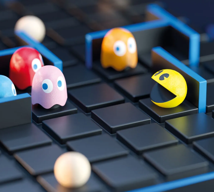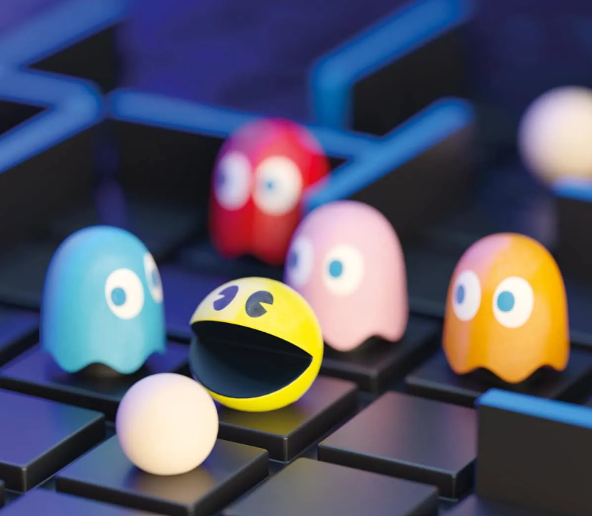 תכולה: לוח, 4 כלי משחק בדמויות רוחות הרפאים, 1 כלי פק-מן, 4 כדורי כח ו-3 כלי חיים.
