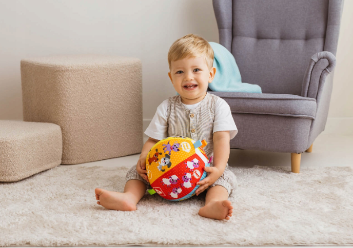 כדור צבעוני, רך ובטוח זה לא רק משעשע תינוקות, אלא גם מסייע בפיתוח מיומנויות חשובות. במשחק עם הכדור, ילדים זורקים, מגלגלים ותופסים אותו ובכך משפרים את כישורי האחיזה והקואורדינציה המוטורית שלהם. כל תנועה של הכדור מלווה במנגינות עליזות עם קולות של חיות משק וצלילים משעשעים, מה שמעורר את סקרנותם של הילדים והופך את זמן המשחק לכיף חושי נהדר! שחקו ותיהנו מלמידה!