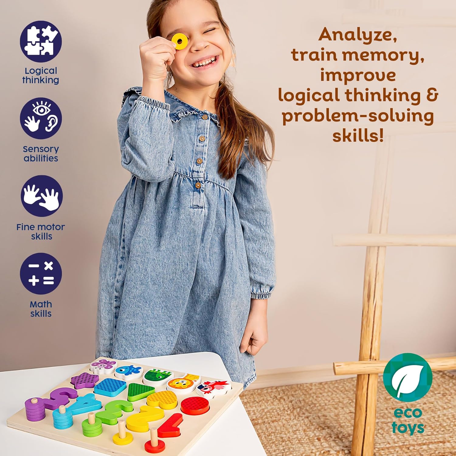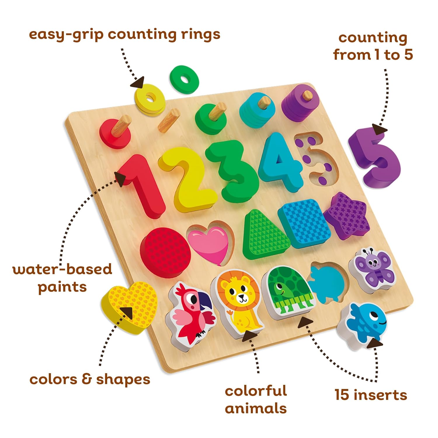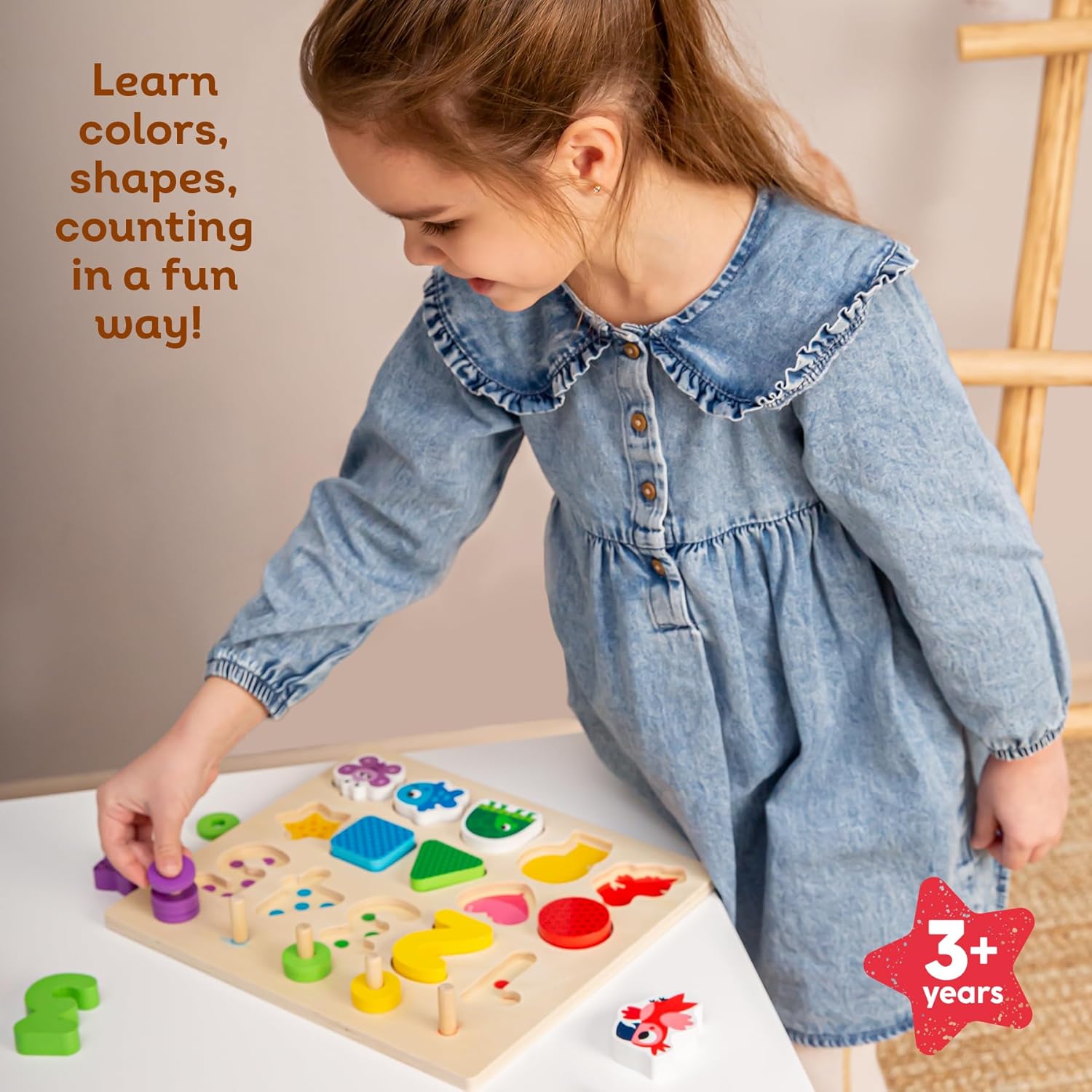 מתמטיקה צבעונית מציגה לילדים צבעים, צורות וספירה בצורה בהירה וכיפית! מיון מספרים וערימה של טבעות על יתדות, ילדים לומדים ספירה וצבעים. לוח רב-משימות זה מציע ללומדים צעירים למצוא את המשבצת המתאימה לכל צורה שהם מכירים ולהתאים את החיות שהם רואים לצורה המתאימה. הקטנטנים מנתחים, מאמנים את הזיכרון שלהם ומשפרים את החשיבה הלוגית ואת כישורי פתרון הבעיות. לימוד מתמטיקה באמצעות פעילויות מיון זה כל כך קל!