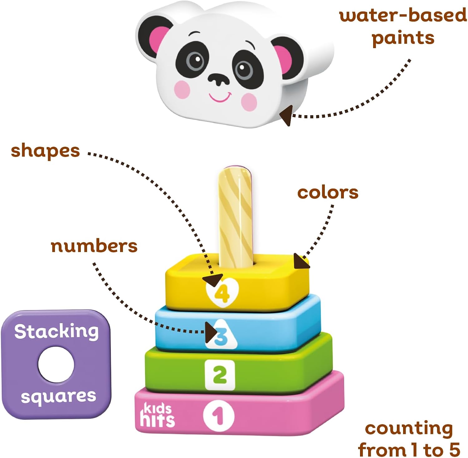 מגדל קוביות פנדה מעץ מבטיחה חוויה מיוחדת לתינוק הלומד לערום פירמידה צבעונית – עושה זאת שלב אחר שלב, החל מהחלק הגדול ביותר ועולה כלפי מעלה לקטן ביותר! לימוד גודל, צורה וצבעים הופכים לקלים בעזרת צעצוע הערימה הזה. בעזרתו, ילדים מפתחים קואורדינציה עין-יד ומוטוריקה עדינה.