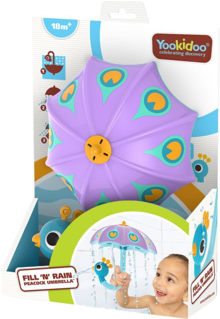 משחק אמבטיה מטריית טווס בצבע סגול מבית Yookidoo.