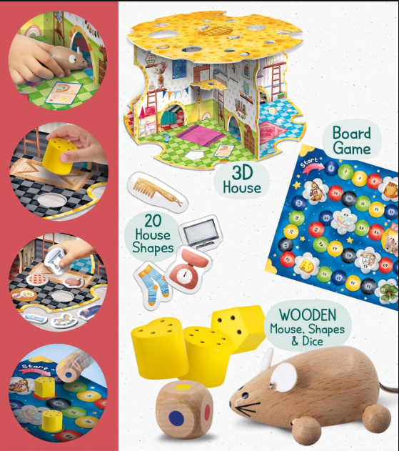 מונטסורי בייבי ווד בית העכבר מבית ליצ'יאני – Lisciani מונטסורי בייבי ווד – בית העכבר הוא משחק עץ חינוכי ויצירתי שמתאים לילדים בגילאי 3 ומעלה. המשחק כולל בית עכבר מעץ שמזמין את הילד להיכנס לעולם מהנה של משחקים חינוכיים, הכוללים התאמת צורות גיאומטריות ומספרים לחדרים השונים בבית. המוצר עשוי מעץ איכותי ומחוספס, עם צביעה בטכנולוגיה בטוחה לסביבה ולילדים. כל פרט במוצר נעשה בעבודת יד, ומספק חוויית משחק לימודית ומרשימה.