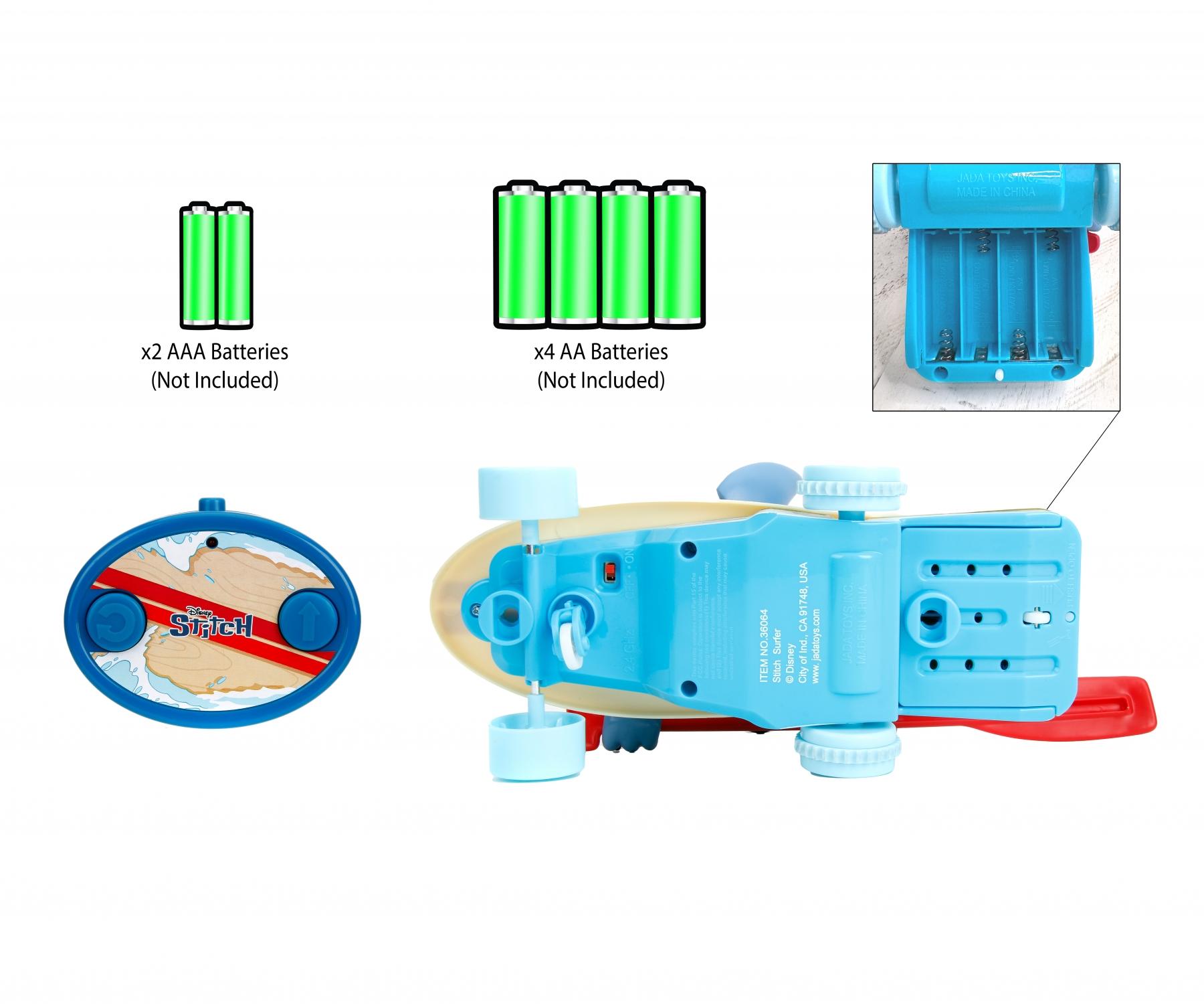 מצריך ארבע בטריות AA לגלשן ו-2 בטריות AAA לשלט
