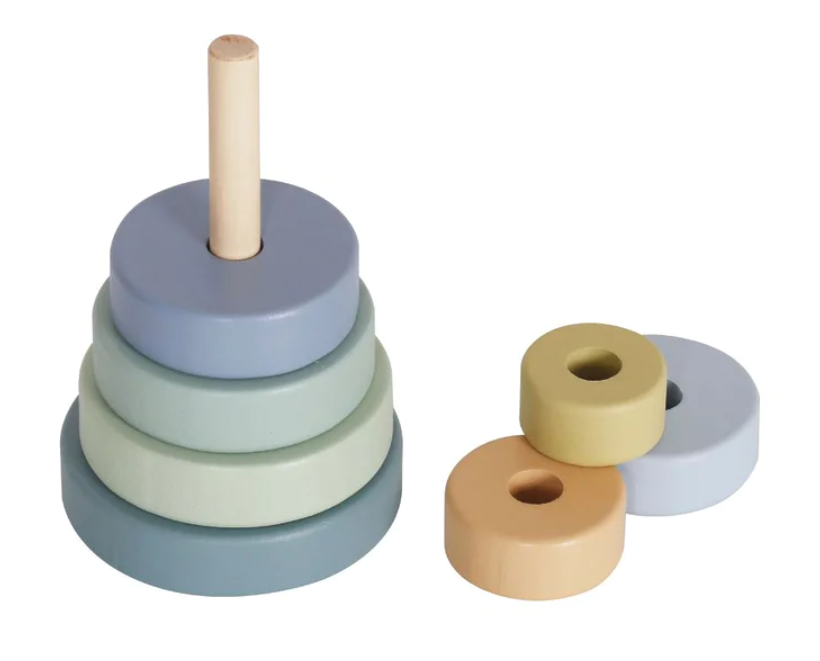 כמות של סט בנייה מעץ בצבעי פסטל כחול
