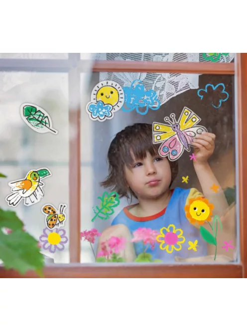 ערכת יצירה וקישוט על חלונות. הערכה כוללת 4 צבעים מיוחדים המכילים שעוות דבורים ו-10 מדבקות רב פעמיות לצביעה וקישוט.