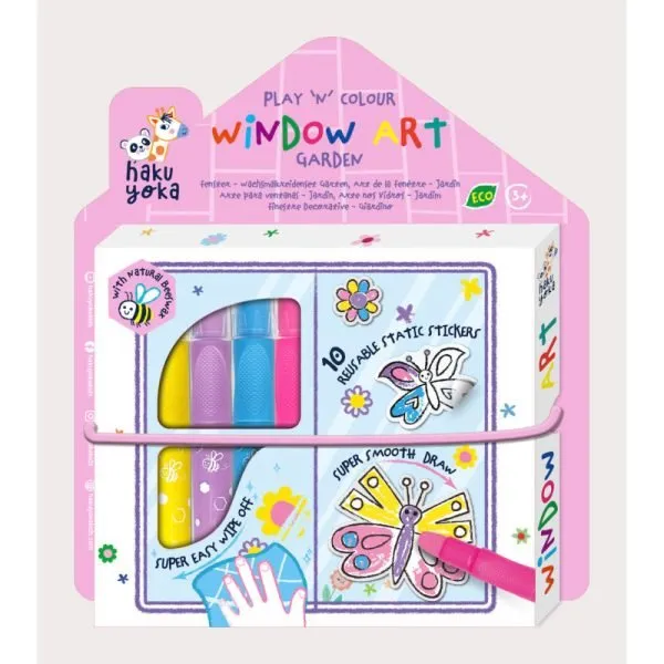 ערכת יצירה וקישוט על חלונות. הערכה כוללת 4 צבעים מיוחדים המכילים שעוות דבורים ו-10 מדבקות רב פעמיות לצביעה וקישוט.