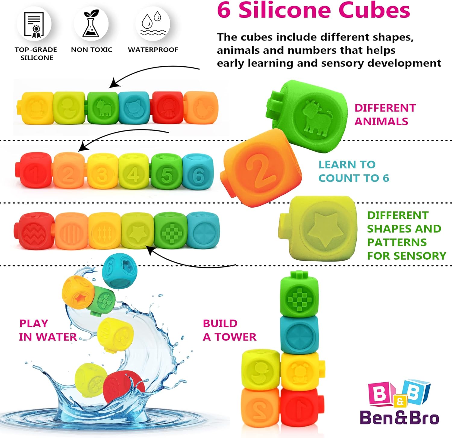 תיהנו מזמן משחק ולמידה בבת אחת: תנו לתינוקכם ליהנות בלי סוף עם צעצוע זה של מיון צורות! מאפשר משחק עם הקוביות הצבעוניות והנעימות תוך הענקת ידע ולמידת מיון צורות וזיהוי צבע.חלקים תחושתיים כדי לעורר את חושי התינוק: תמכו בהתפתחות התינוק שלכם עם צעצוע קוביית התינוק שמעורר את סקרנותם וחושיהם! עוזר לפתח מיומנויות מוטוריות עדינות ובונה מיומנויות קוגניטיביות.החלקים עשויים מפלסטיק ברמה הגבוהה ביותר. 6 קוביות הסיליקון הכלולות משמשות גם כצעצועי אמבטיה.